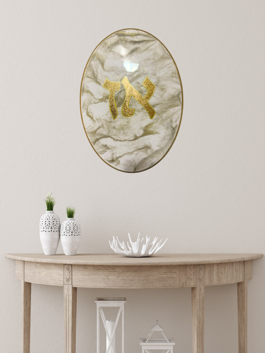 Ce tableau à base de toile est une création unique, entièrement réalisée à la main, alliant élégance, spiritualité et raffinement.